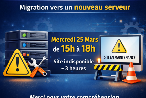 ActualitéBlog 24 mars 2026 Maintenance exceptionnelle du site mercredi de 15H à 17H ⚠️ Maintenance exceptionnelle du site – Migration vers un nouveau serveur Chers clients, Nous souhaitons vous informer en toute transparence…Lire la suite…