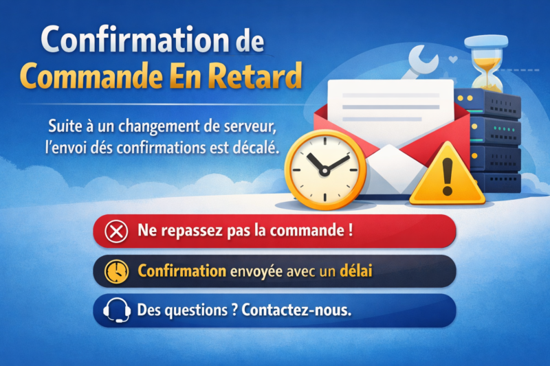 Mise à jour : suite à un changement de serveur, nos confirmations automatiques peuvent arriver en décalé.